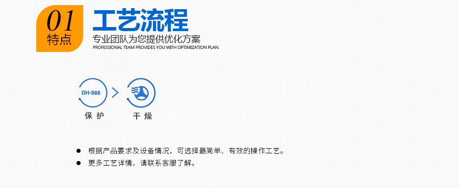 DunHua988 使用建議 操作方式 浸沒、噴涂、涂抹 使用濃度 100% Vol 處理溫度 常溫 處理時(shí)間 10s~3min 適用范圍 銅、鋁、不銹鋼、粉末冶金、鑄鐵、電鍍系列等金屬的封閉抗氧化保護(hù)