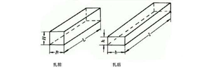 2、體積不變定律:金屬塑性變形中,其密度改變極為微小,可以忽略。塑性變形的物體的體積保持不變,金屬坯件在塑性變形以前的體積等于變形后的體積。體積不變定律是根據(jù)產(chǎn)品形狀尺寸、計(jì)算出體積,據(jù)此再確定所需坯件的具體尺寸。