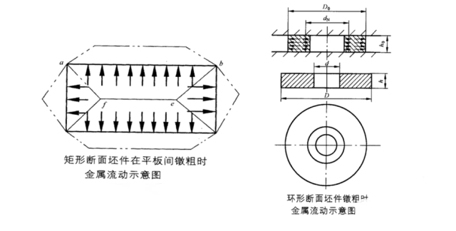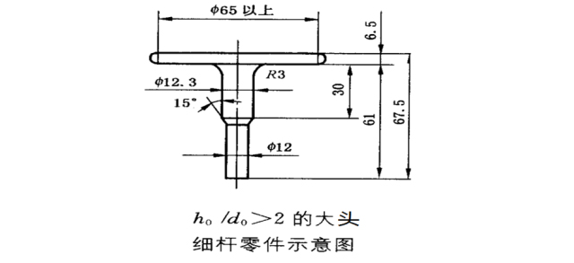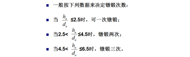 5、考慮工件頭部直徑D與高度H的比值:頭部直徑較大、高度較小的大直徑薄扁頭細(xì)桿零件,所需坯料h,/d,在2以上大頭細(xì)桿零件,若采用一次鐓鍛成形,就會(huì)在頭部邊緣處產(chǎn)生裂紋。類似的工件,只有增加鐓鍛次數(shù),采用逐步成形的方法。