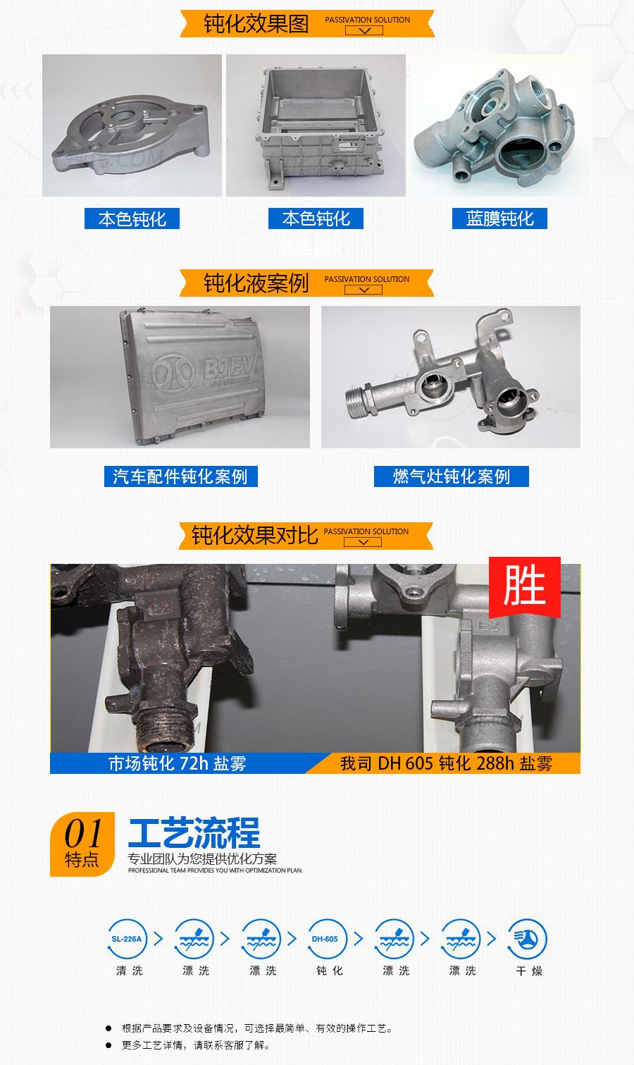 操作簡單、鈍化時間短、無氣味;在浸泡、噴淋、手工擦試工藝中均易于操作。