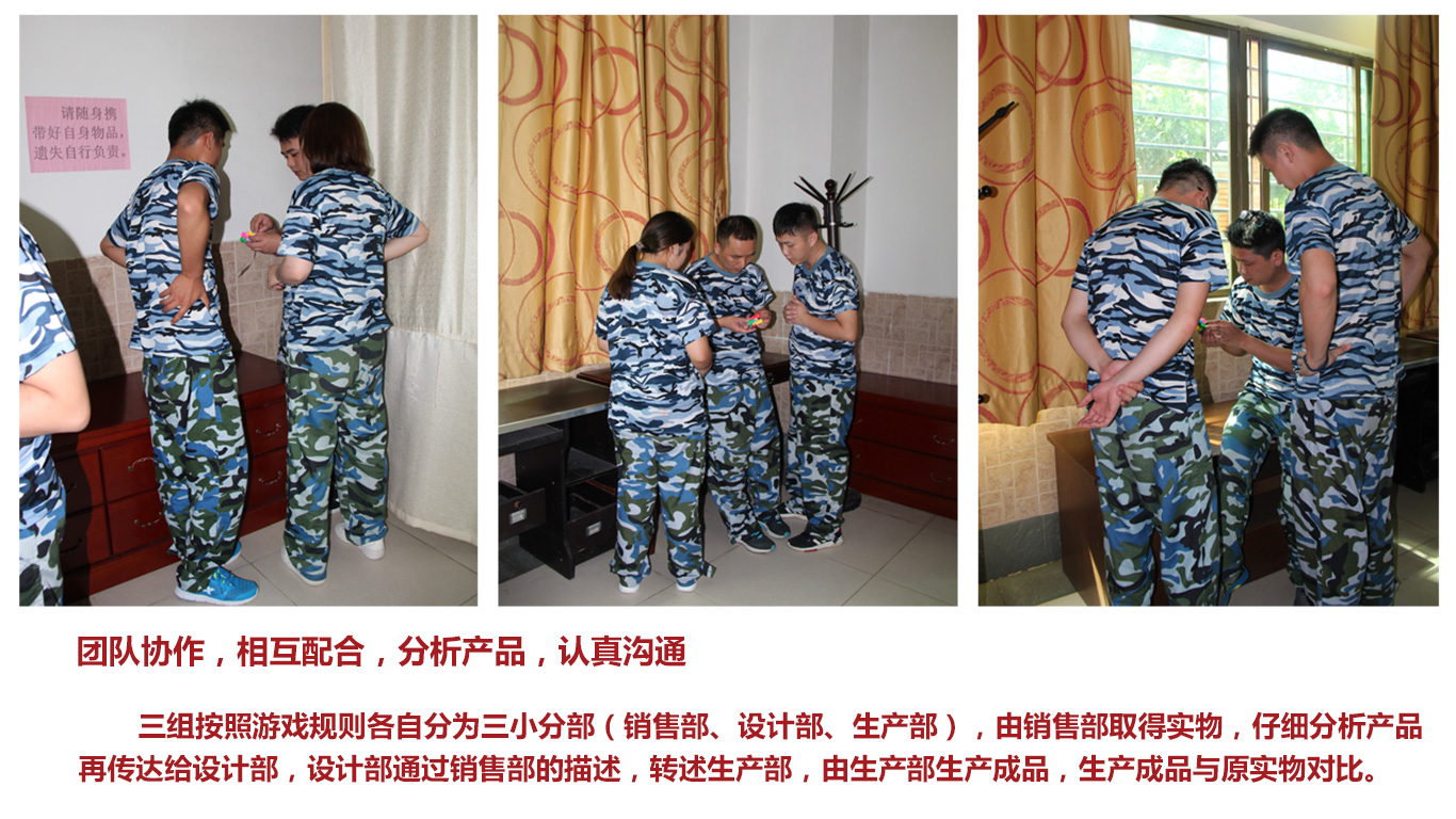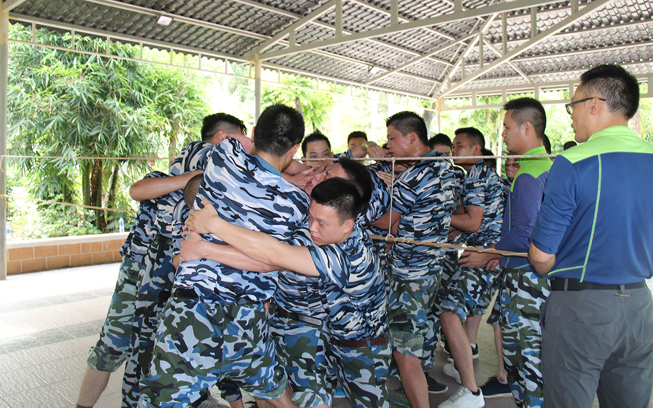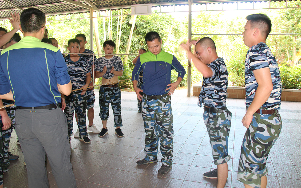在最后的項(xiàng)目中,三隊(duì)合并成一隊(duì)按照訓(xùn)練項(xiàng)目要求,游戲過程中不能發(fā)出任何聲音,在保證絕不碰觸繩索的情況下,所有人必須從一米高,僅容1人通過的洞口通過。這一項(xiàng)目是團(tuán)隊(duì)協(xié)作能力、體力、耐力、智慧與意志的絕對(duì)挑戰(zhàn)。