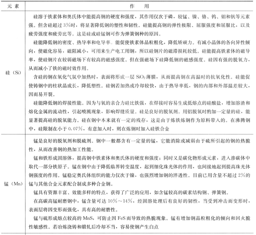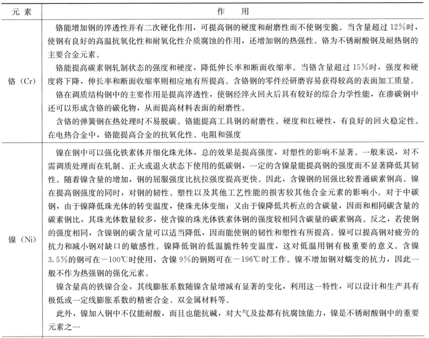 合金元素在鋼中的主要作用見(jiàn)表1。