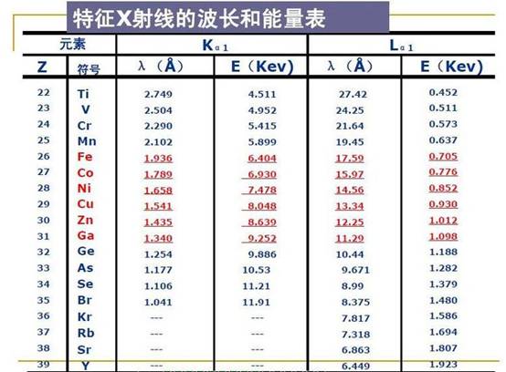 特征X射線的波長(zhǎng)和能量表如下: